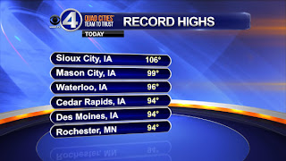 We missed our record high by a few degrees today, but there were plenty of records broken through the middle part of the country! What's even more remarkable...a lot of places that had snow in early May soared into the 90s/100s today! Sioux City, IA broke the record for May 14th, and for the whole month of May this afternoon!